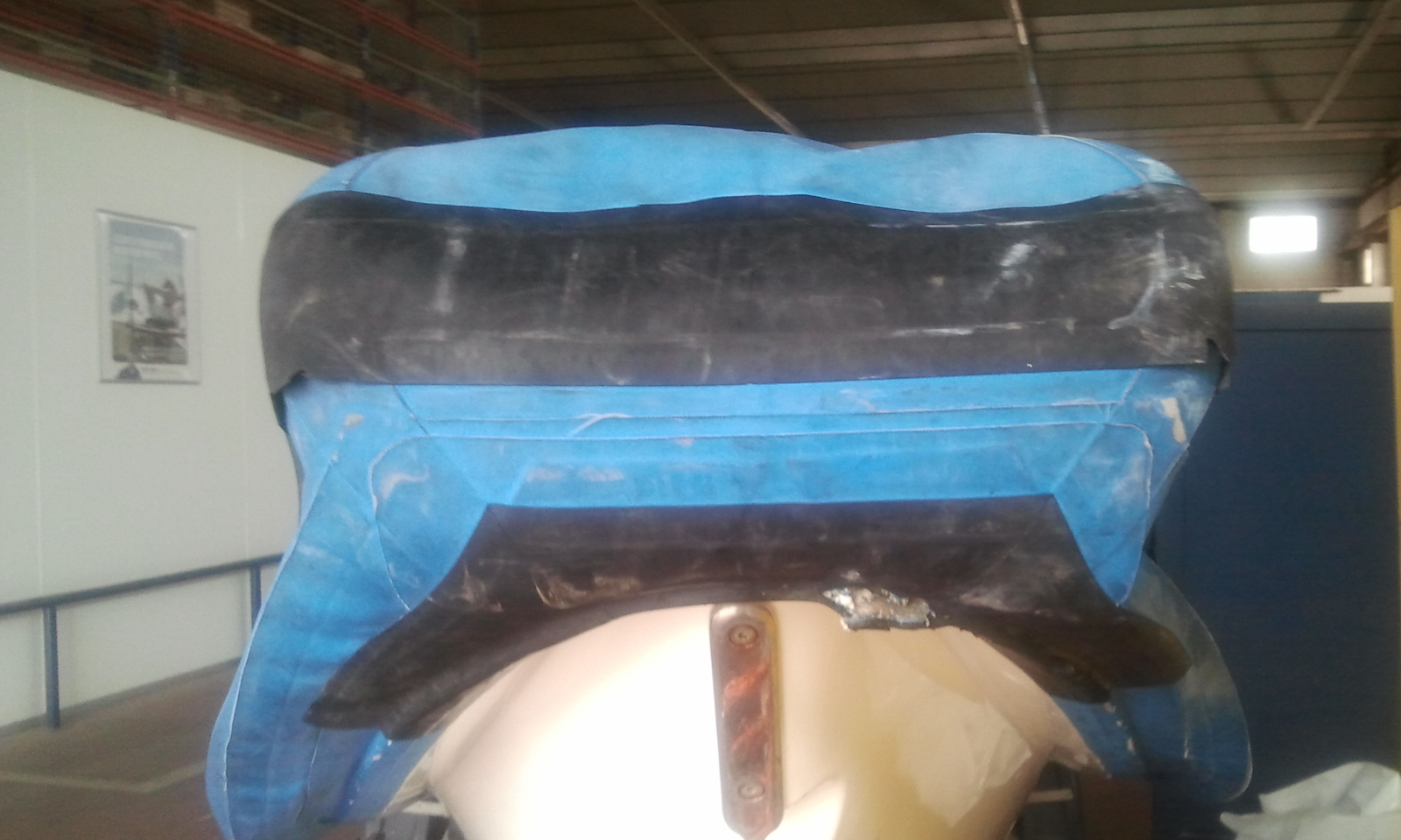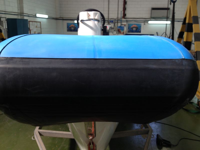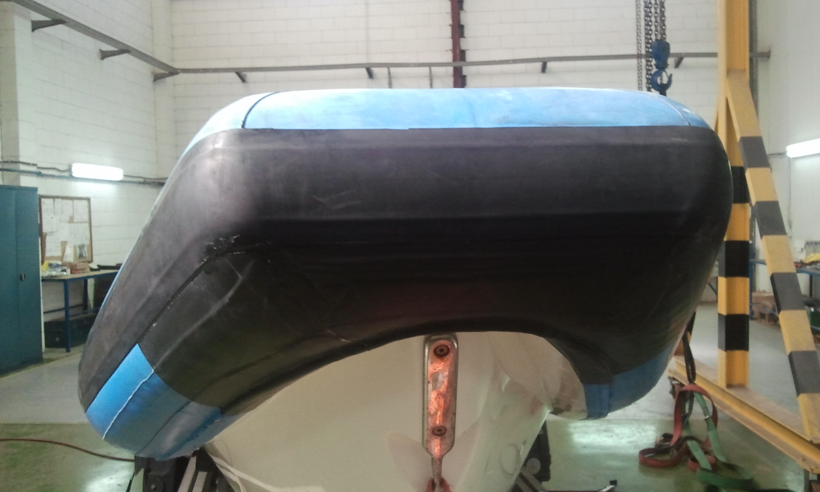 Autonaval Mantenimientos ha realizado la reparación de la neumática. La reparación se ha realizado sobre la fibra del casco y el flotador. Ha consistido en reparar el casco de fibra, reparar el pinchazo en el flotador y poner refuerzo en toda la proa de la embarcación.