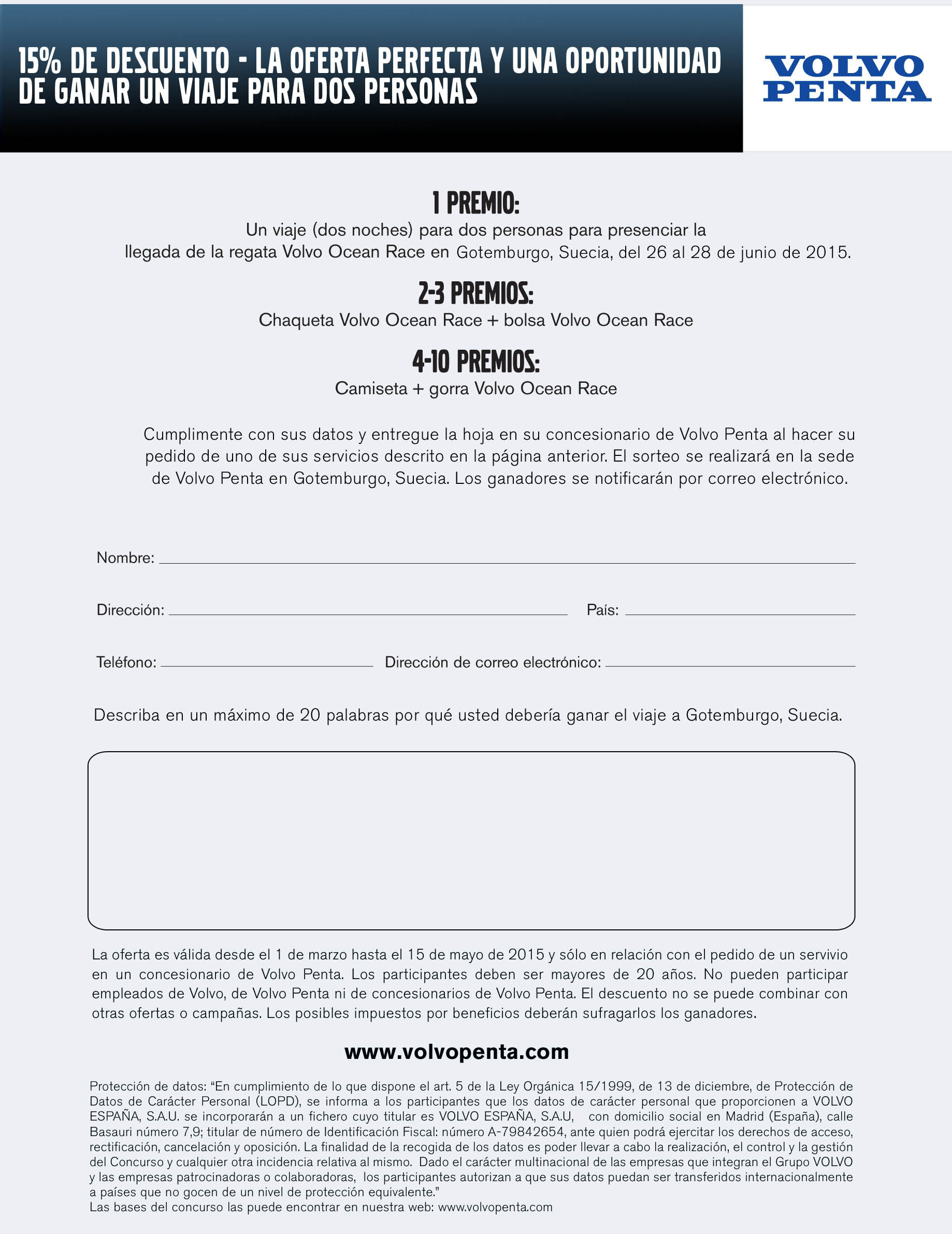 Volvo Penta lanza la Campaña de Mantenimento VOR por la que se beneficia de un descuento en los materiales de la revisión de su motor y con la que podrá ganar un viaje a la llegada de la Volvo Ocean Race.